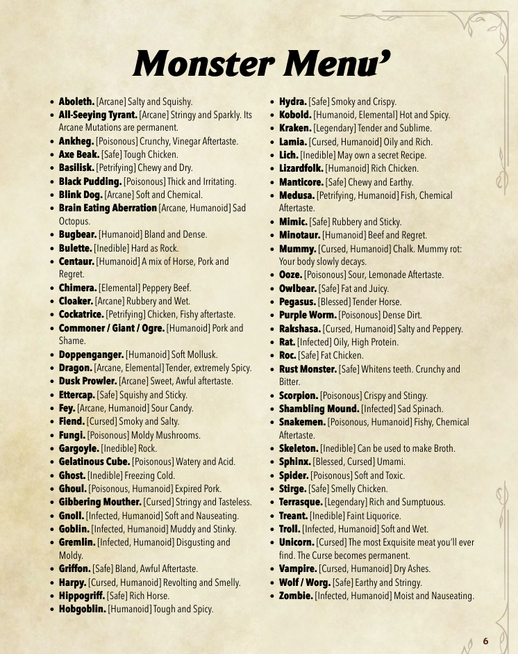 Cook and Eat delicious meals from Monster remains, but beware of the Side Effects!